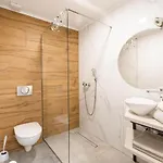 Dieses Apartment bietet eine Terrasse, einen Ankleidebereich und eine Sitzecke mit einem Flachbildfernseher mit Satellitenkanälen und einer Klimaanlage für einen angenehmen Aufenthalt. Rauchmelder gehören zu den Sicherheitseinrichtungen im Zimmer. Das Apartmaji Natura Kolpa bietet den Gästen einen Haartrockner, Toilettenartikel und Badelaken im Badezimmer. Außerdem findet man hier eine getrennte Toilette und eine Dusche.